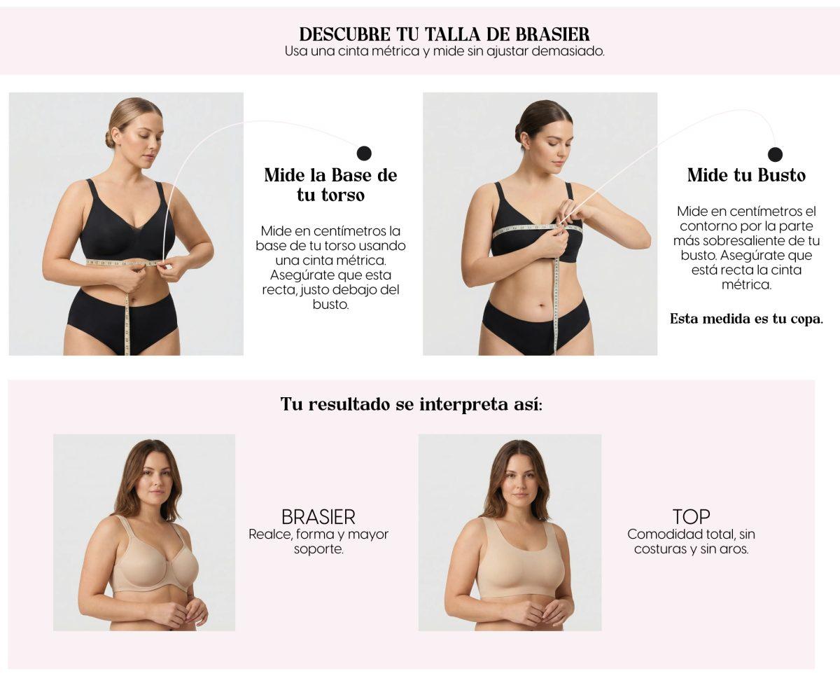 Guía referencial basada en medidas internacionales de brasier y equivalencias por marca.