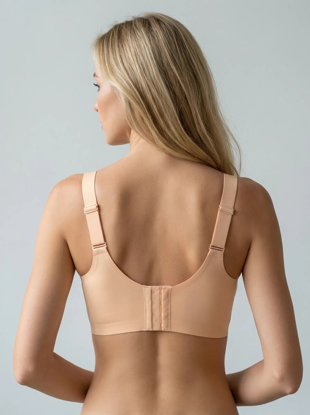 Su diseño sin costuras se adapta al cuerpo con un acabado invisible, mientras el broche posterior permite un ajuste preciso.