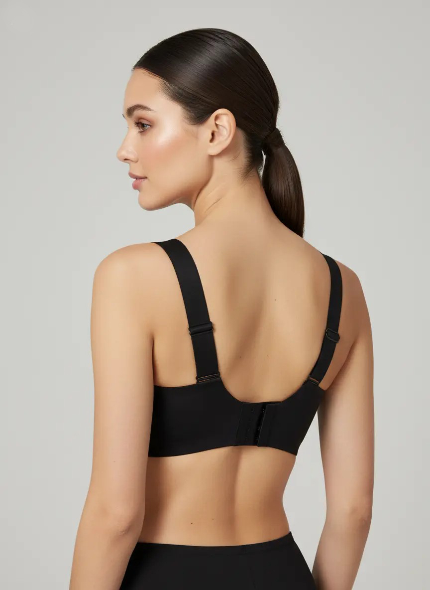 Su diseño sin costuras se adapta al cuerpo con un acabado invisible, mientras el broche posterior permite un ajuste preciso.