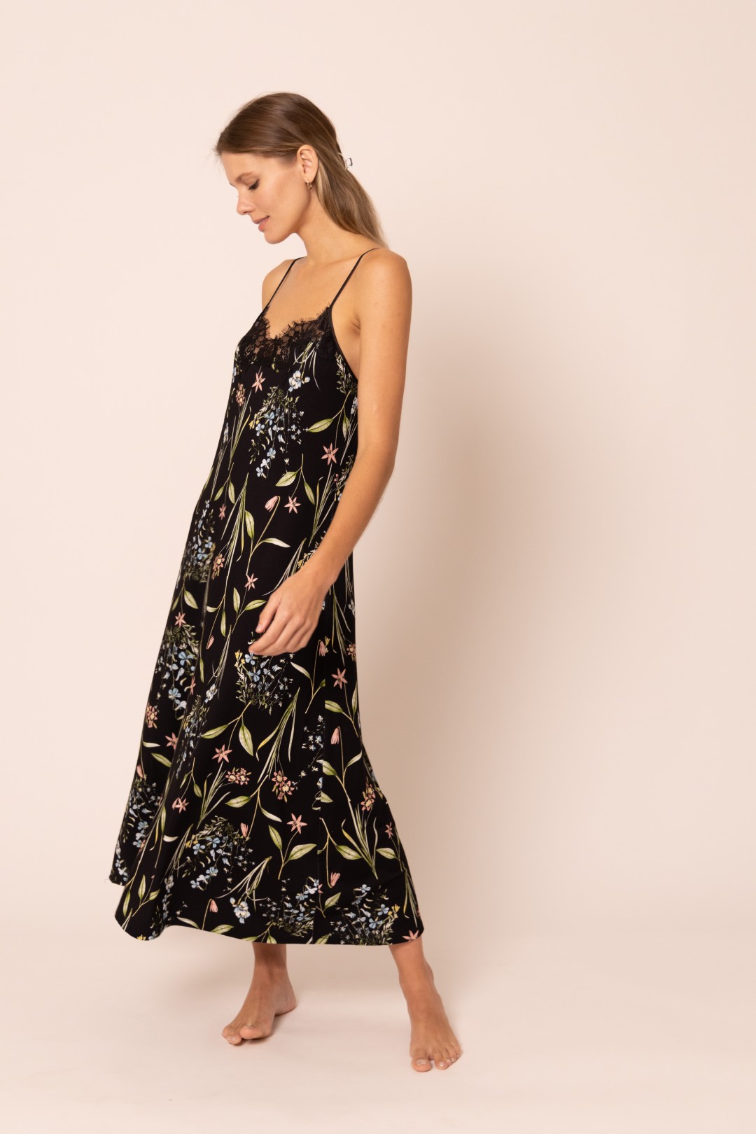 • Camisola refleja la delicadeza de las noches de la temporada, combinando un sofisticado fondo oscuro con follaje que aporta un toque de elegancia y frescura.