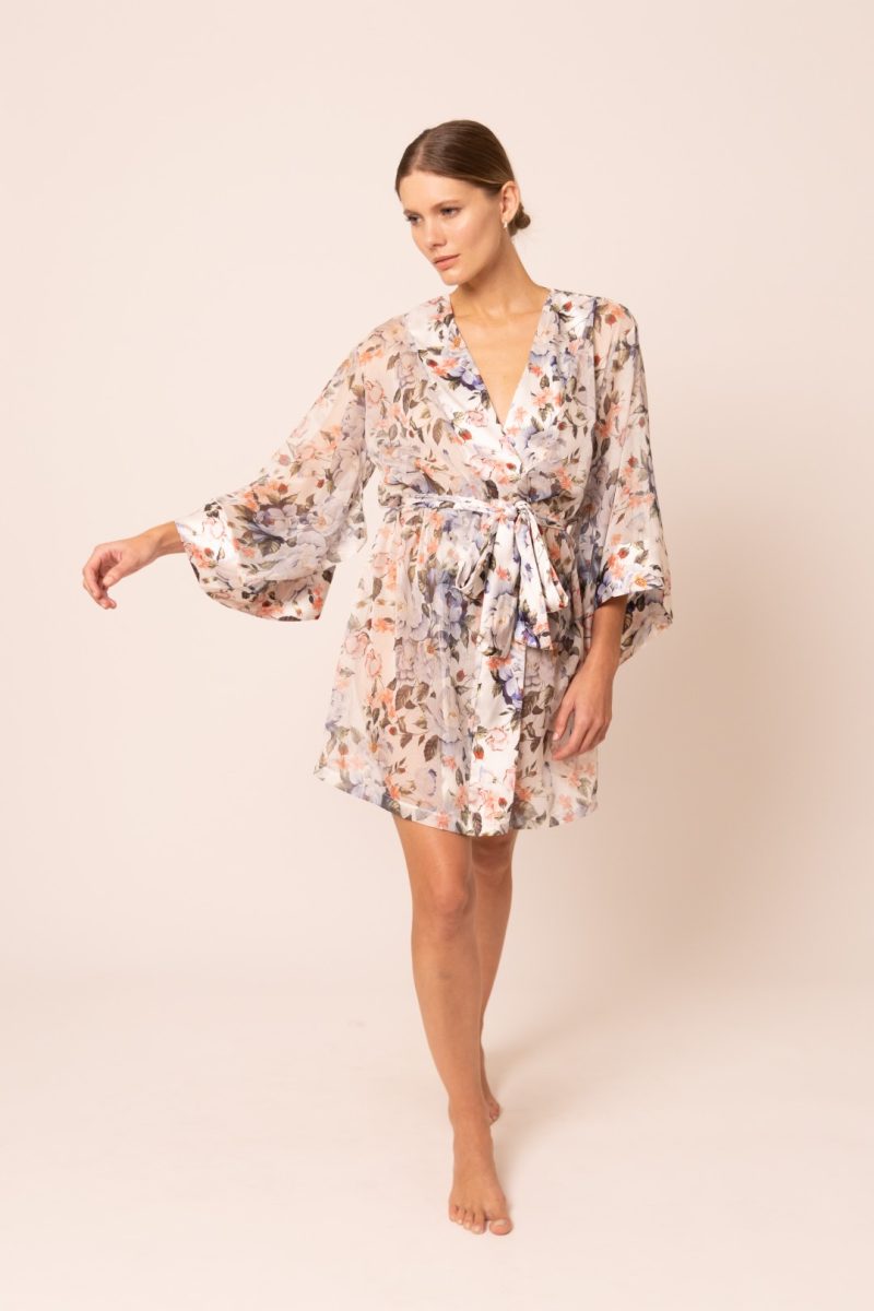 • Kimono estampado aporta la delicadeza de las flores en tonos suaves, reflejando la elegancia y el encanto del otoño-invierno.