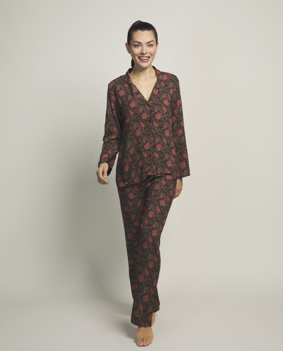 • Pijama estilo camisero completo. Diseño compuesto por parte de arriba de corte camisa con cierre delantero y pantalón largo. Con un estampado floral muy femenino que garantiza una experiencia de sueño cómoda y placentera. Ideal para este invierno.