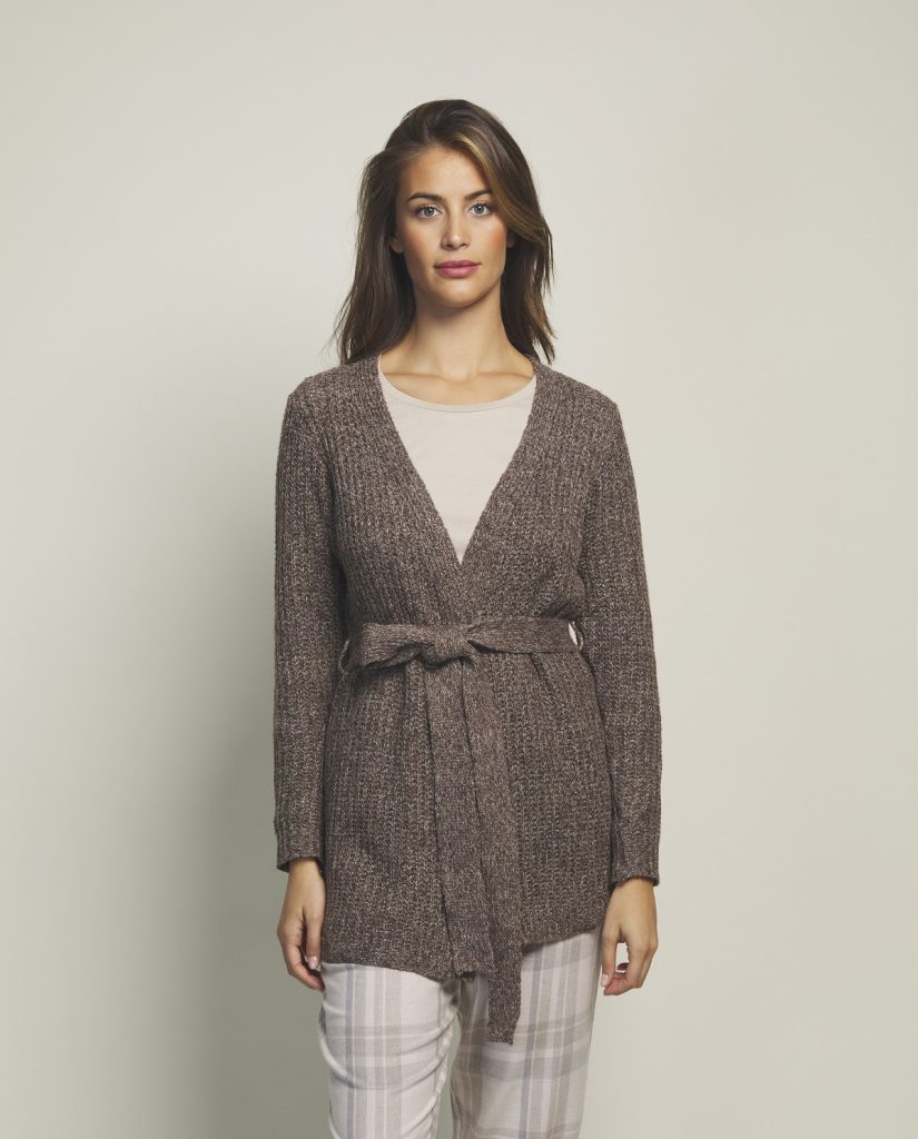 • Salida larga de punto con corte clásico y cinto. Ideal para usar sobre camisón o pijama.