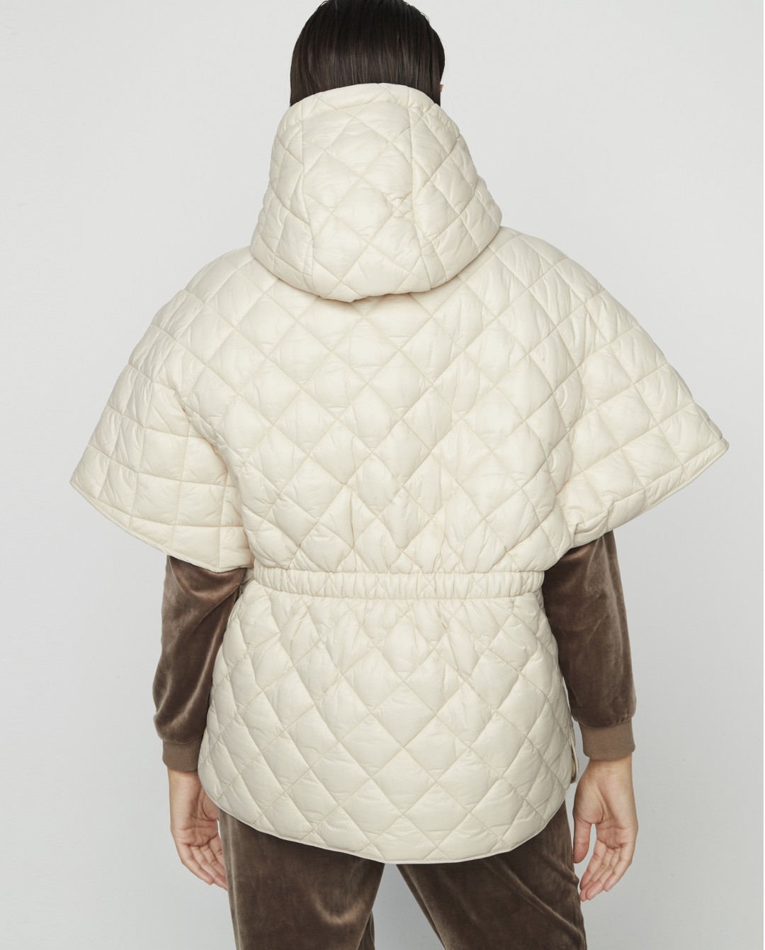 • Abrigo de mujer estilo capitoné. Este original diseño tiene mangas hasta los codos, cremallera, bolsillos y capucha incorporada. Su tono duper combianble hacen de este abrigo una prenda ideal para completar tu look de otoño/invierno.