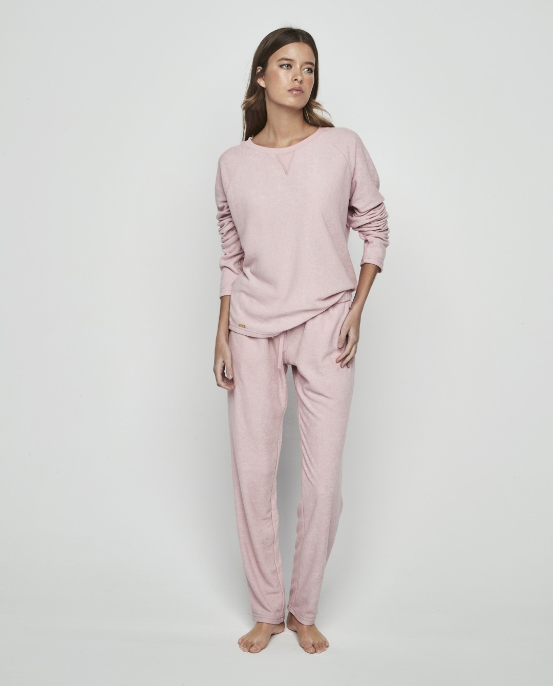 • Pijama de mujer de dos piezas. Confeccionado en tejido extra suave incluye camiseta de manga larga con cuello redondo y pantalón largo con bolsillos y lazo ajustable. Una prenda pensada para envolver tus noches en calidez y confort, porque no hay sensación más reconfortante como la de sentirse como en casa.