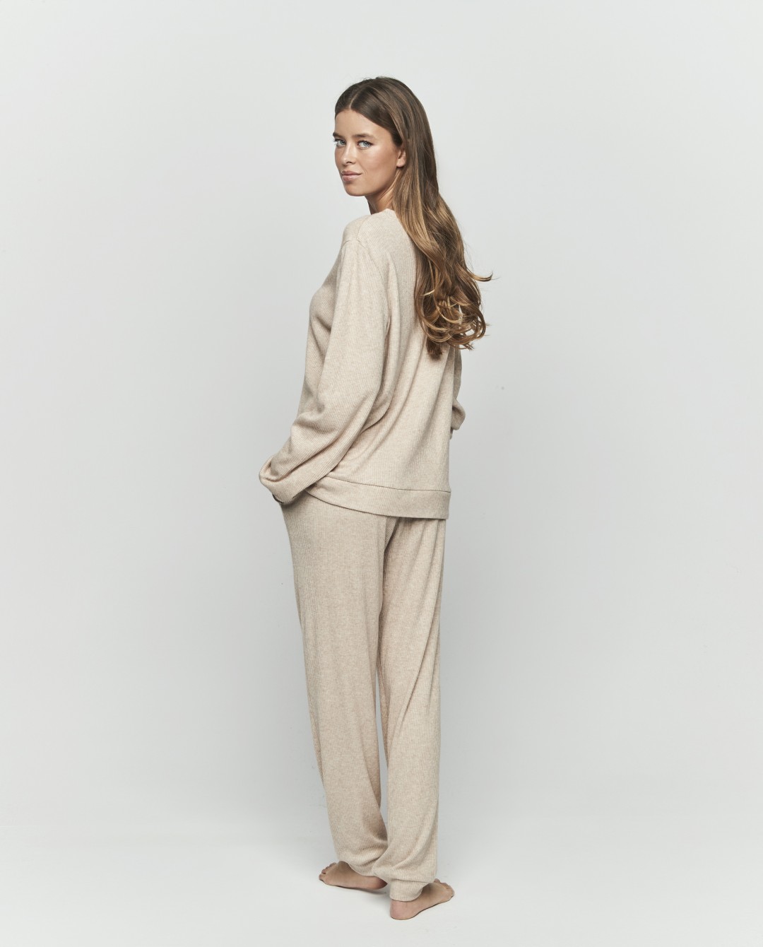 • Pijama de mujer de dos piezas. Confeccionado en tejido extra suave incluye camiseta de manga larga con cuello redondo y la parte inferior, pantalón largo con lazo ajustable. Ideal para noches de descanso plenas, donde el confort y la sensación de hogar son los protagonistas.