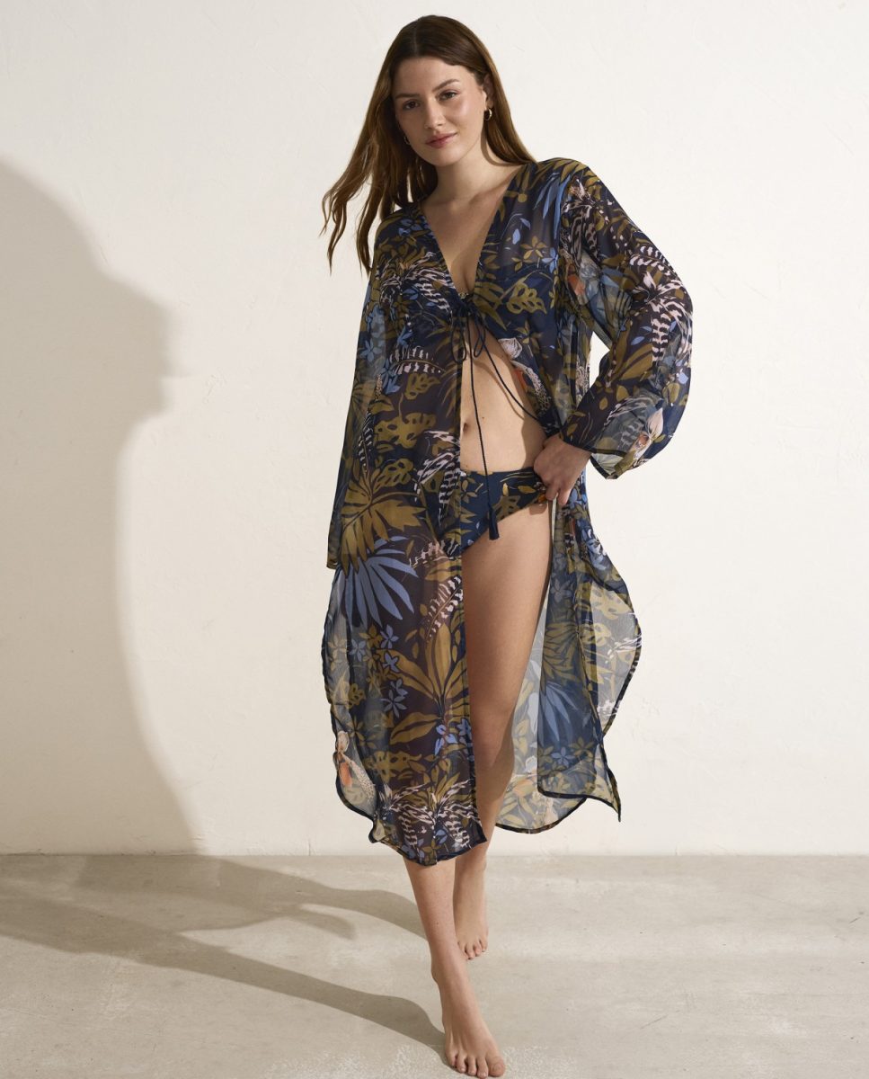 • Kimono. Ideal para lucir sobre tu bikini o bañador. Su diseño captura la energía de la naturaleza, con estampados que te transportan a paisajes vívidos y misteriosos de la selva amazónica.